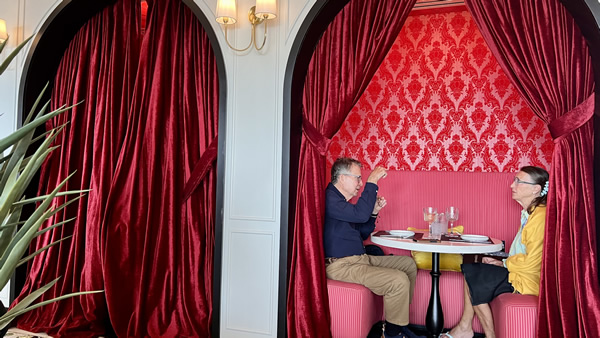 There are cozy places to relax if you’re waiting for your partner in dining.